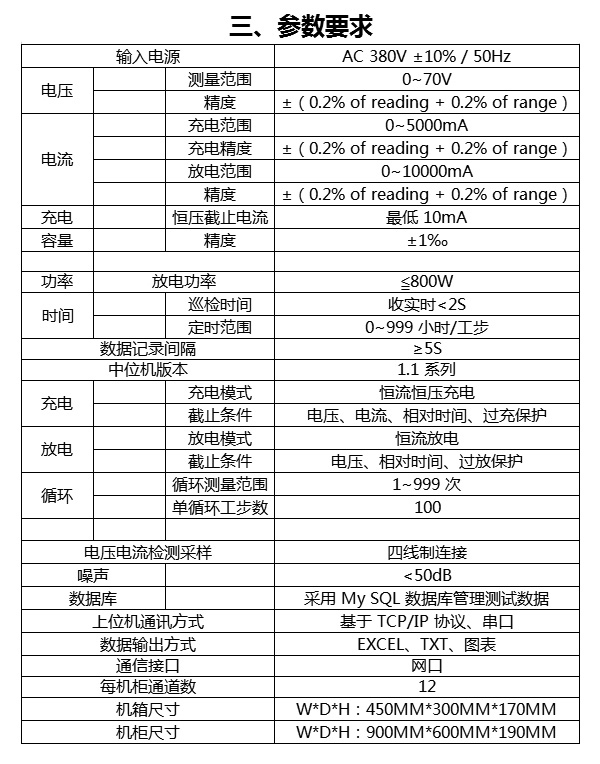 防反接保護(hù)功能;電壓上、下限設(shè)置保護(hù);安全放電電流保護(hù)(最大電流 20A);